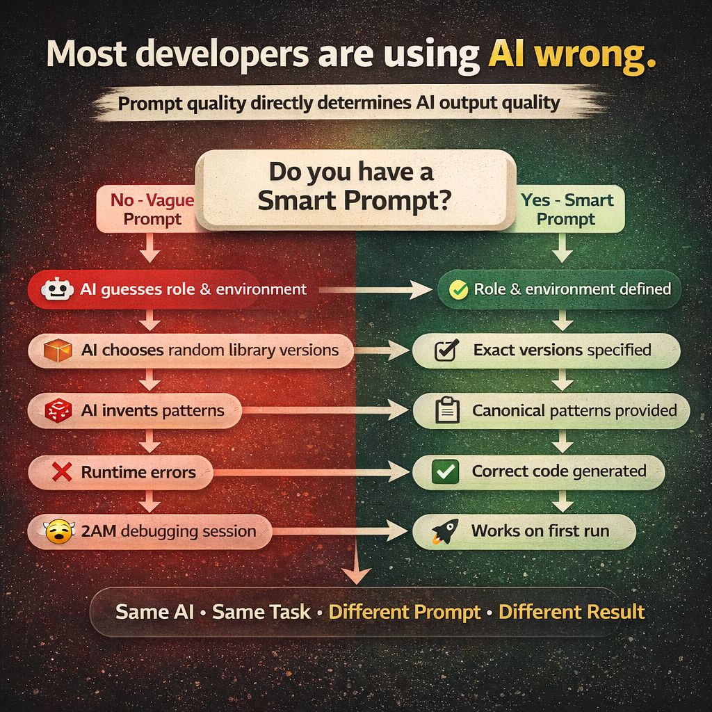 When you write a vague prompt, you're asking the model to be an architect. It will try — and it will produce something that looks like an architecture but collapses under real conditions. When you write a Smart Prompt, you become the architect. You hand the model a detailed blueprint and ask it to build. That's what it's actually good at.